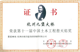 九堡大桥工程是杭州市城市总体规划(2001-2020)中“两绕三纵五横”城市快速路网系统中的重要组成部分,是浙江省重点工程建设项目。大桥全长1855米,概算总投资10.82亿元,主桥上部结构为3×210m跨径的连续梁-钢拱组合体系结构桥梁,钢结构总重约1.3万吨,施工采用首创“整体顶推施工”工法,创新了建设理念与施工技术,多项科研成果达国际领先水平,体现了全寿命经济性理念,为推动我国组合结构桥梁的发展做出贡献。项目荣获第十一届中国土木工程詹天佑奖、2012-2013年度中国建设工程鲁班奖、全国市政金奖。
