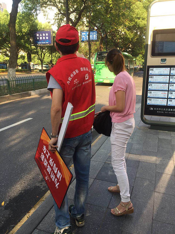 2017万名党团员志愿服务队杭城公交站文明劝导活动掠影