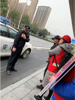 实在无法确认老人的住址,小吕赶紧拨打了110报警电话,向驻地派出所求助,唯一的男性志愿者小刘一直在旁安慰老人。很快,警察蜀黍们赶到现场,将老爷爷送上了车,安全地送回家。