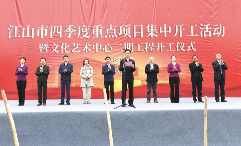 最后市委书记童炜鑫宣布:“江山市四季度重点项目暨文化艺术中心二期项目集中开工!”