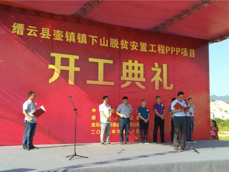 9月18日下午,缙云县壶镇镇下乡脱贫安置工程PPP项目开工奠基仪式在壶镇镇安置工程施工现场隆重举行。莅临现场的领导有缙云县副县长陈银根、缙云县人大常委副主任陈庆元、龙元集团公司副总裁罗永福及壶镇镇镇长周子会。参加开工仪式有建设单位、政府机关、镇政府人员及相关村代表。开工仪式上,陈银根副县长、罗永福副总裁致辞,陈庆元副主任宣布工程正式开工,各方领导参加奠基填土仪式。