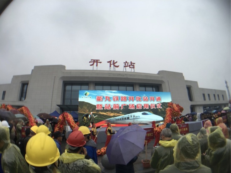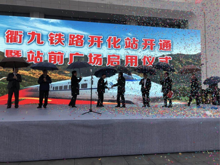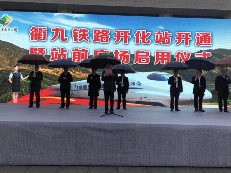 仪式最后,开化县委书记项瑞良同志宣布衢九铁路开化站正式开通、火车站站前广场顺利投入使用。