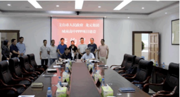8月15日下午,由文山市人民政府副市长戴筠组织,在市府办会议室就城南高中PPP项目建设的《投资协议》、《合资协议》举行文山市人民政府与龙元集团的签约仪式。两项协议均顺利签约,为项目建设奠定了良好的基础。
