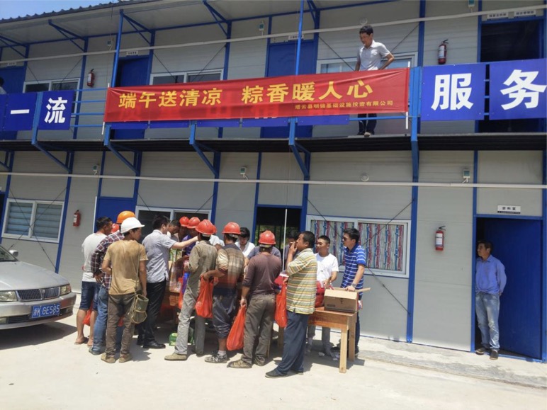 酷夏无情,人间有爱。缙云县养老院及配套工程项目施工作业人员不辞辛苦,坚守在作业岗位,他们每天在高温下作业,保障项目顺利推进。6月15日,借端午佳节,指挥部组织开展“端午送清凉,棕香暖人心”活动,为一线劳动者送上毛巾、粽子、绿豆粥等生活用品,为他们送上一份来自公司的祝福,让他们在炎炎夏日感受到一份清凉,进一步增强了员工对公司的认同感、归属感。
