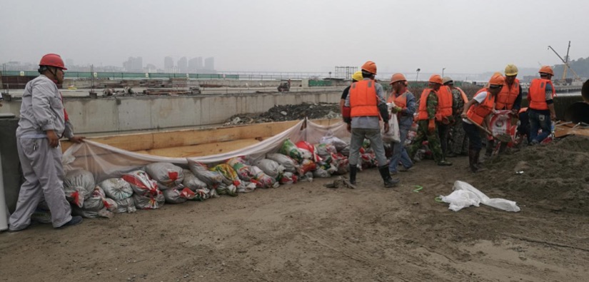 6月8日上午,温州市鹿城区瓯江绕城高速至卧旗山段海塘工程项目部主办,各参建单位参加的2017年建筑工地防汛、消防演练活动在海塘工程二工区工地现场开展。此次活动还邀请了鹿城区防汛办、国土资源局和丰门街道相关领导到场观摩。