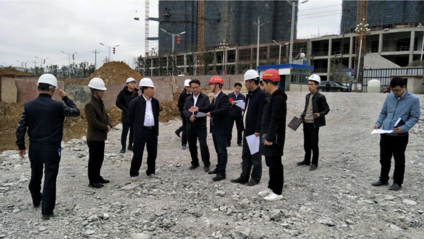 昨天下午2点,六枝特区人民政府杨昌显书记、方裕谦区长、彭良国副区长等莅临六枝特区人民医院改扩建项目工地现场指导工作,就项目推进进度及遇到的问题进行了调研,我司项目总指挥戴鲜明就各位领导关心的问题一一解答。