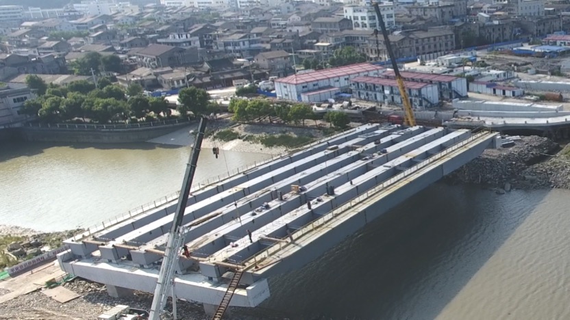 卧旗河大桥钢箱梁主跨架设完成