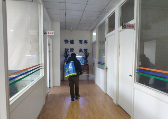 为积极应对新冠病毒,项目部对办公区域每个角落进行消毒,为员工分批复工复产做好防护保障,主动与当地政府、业主沟通协调,经防疫指挥部批准,取得20人的特许通行证,与施工项目部一起做好防疫和复工准备工作。