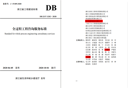 浙江省住房和城乡建设厅日前发布浙江省工程建设标准《全过程工程咨询服务标准》(DB33/T1202-2020),欧美性爱 为参编单位,公司总经理李雄坤、副总经理马迪辉参与了该标准的编制。