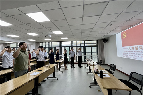 潘明浪书记带领全体党员重温入党誓词,“我志愿加入中国共产党,拥护党的纲领,遵守党的章程……随时准备为党和人民牺牲一切,永不叛党。”面对党旗,党员们回顾入党初心,用铮铮誓言表达不懈奋斗的决心和意志。